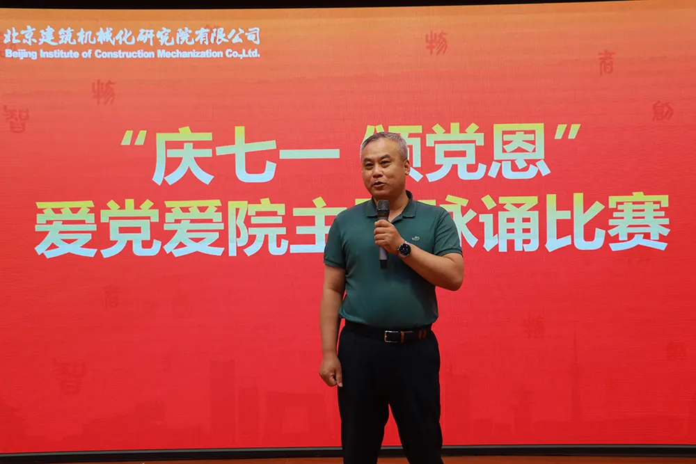 7月31日,北京建機院舉辦“慶七一 頌黨恩”愛黨愛院主題詠誦比賽,來自公司各單位18支參賽隊伍45名員工參賽。公司黨委書記、董事長兼總經理宮劍飛,黨委委員、紀委書記呂振綱,黨委委員、總會計師楊如冰,黨委委員、副總經理崔太剛、張聲軍、王東紅以及黨委委員、副總經理、工會主席王春琢出席活動并擔任比賽評委。