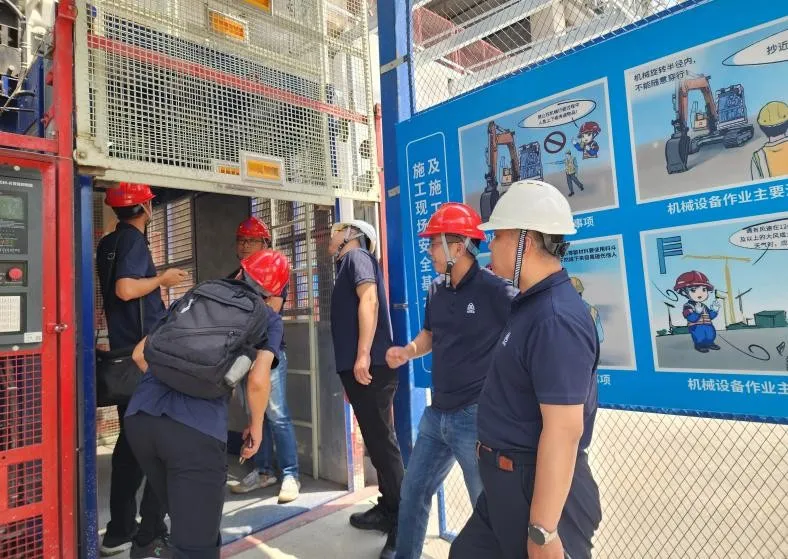 為進一步深入落實《公司安全生產治本攻堅三年行動實施方案(2024—2026年)》,夯實安全生產工作基礎, 6月27日,北京建機院黨委書記、董事長兼總經理宮劍飛帶隊調研天津環(huán)湖醫(yī)院項目智能施工升降機使用情況并檢查安全生產工作。北京建機院黨委委員、副總經理、分管安全負責人王春琢參加調研檢查。